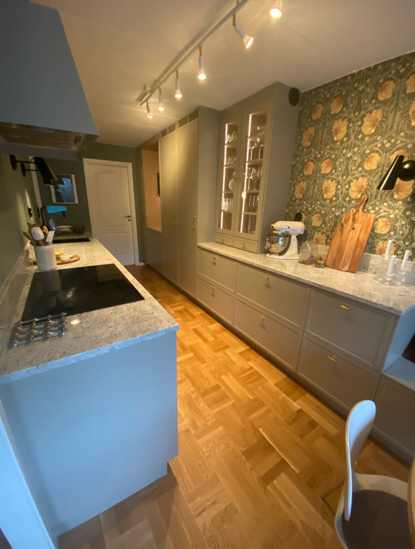 I detta projekt har vi samordnat flera yrkesgrupper och ansvarat för arbetet från start till färdigt resultat. Köksbyte, nya golv, målningsarbeten samt el och VVS har genomförts för att skapa ett funktionellt och genomtänkt kök med hög kvalitet rakt igenom. Ett mycket lyckat slutresultat och en nöjd kund.